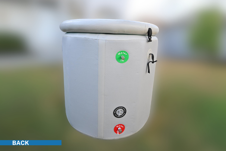 Included accessories: Hand pump, carry bag for the inflatable barrel, repair kit, pump and filter