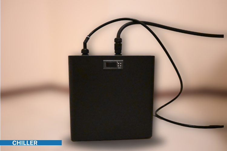 Dimension: 33.5cm x 37cm x 33.5cm, Power: 220V, 50Hz, 1/2 HP Machine, Setting temp 2-28°C, Water can lower at 2-3 °C/per hour, 1200W